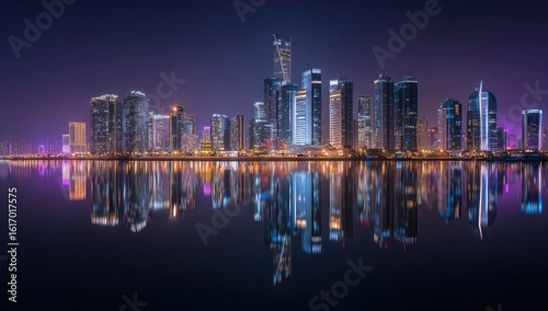 © Wandrian, Fototapeta premium Night cityscape reflected in still water