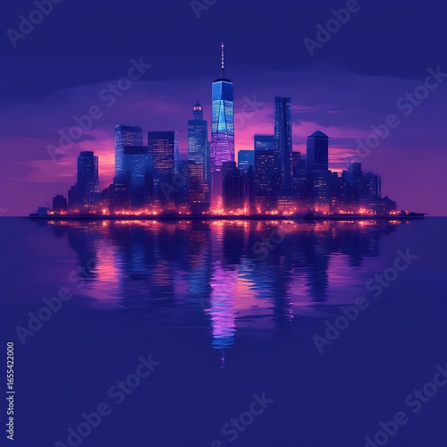 © Koncolawas, Fototapeta premium Night cityscape reflected in still water.