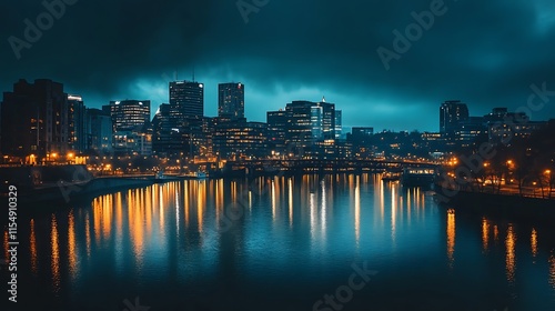 © atar, Fototapeta premium Night Cityscape Reflection