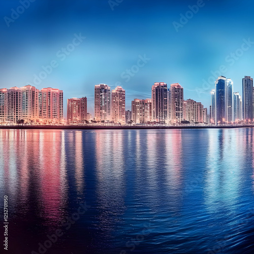 © Siasart Stock, Fototapeta premium Night Cityscape Reflection