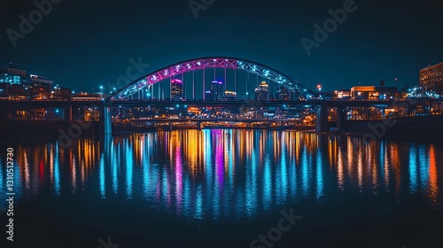 © Mrs. Studio, Fototapeta premium Night Cityscape Reflection on Water with Illuminated Bridge Arch