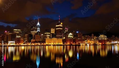 © awan toklo, Fototapeta premium Night cityscape skyline reflections