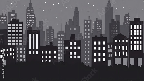 Fototapeta premium Night Cityscape Skyline Urban Buildings Dark Grey Monochrome
