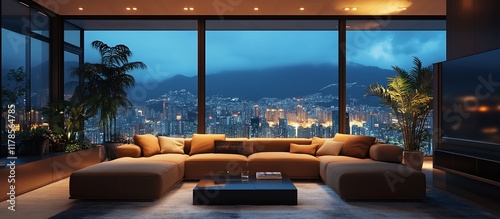© MINHOO, Fototapeta premium Night Cityscape View from Luxurious Apartment