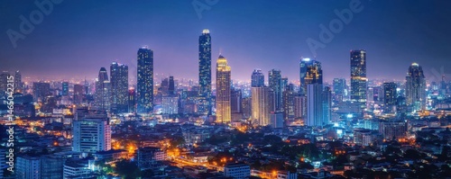 © Maftuh, Naklejka premium Night Cityscape View of Tall Buildings