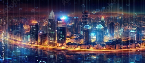 © naila mutmainah, Obraz premium Night Cityscape with Digital Overlays