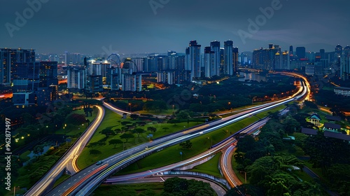 © Yelena, Fototapeta premium Night Cityscape with Highway and Light Trails