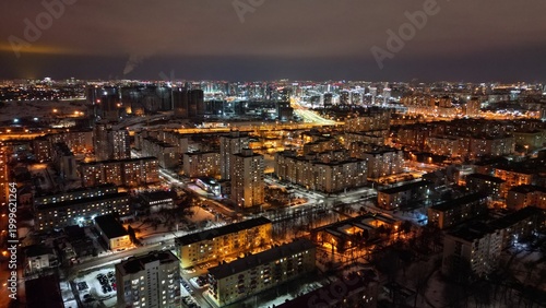 © AVR, Naklejka premium Night Cityscape with Illuminated Residential District