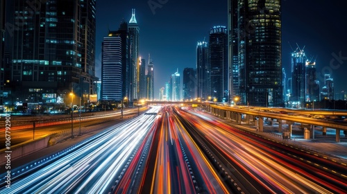 © Anisah, Fototapeta premium Night Cityscape with Light Trails