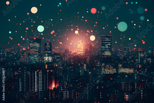 © StudioX, Fototapeta premium Night cityscape with network connections.