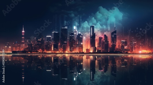 © yasna , Fototapeta premium Night Cityscape with Reflections
