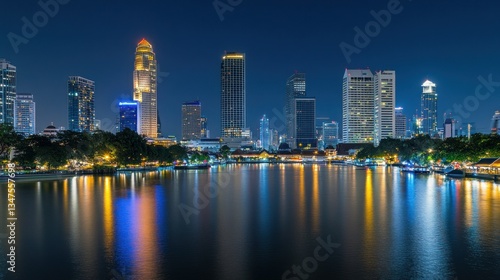 © Gerbang, Obraz premium Night Cityscape with River Reflections