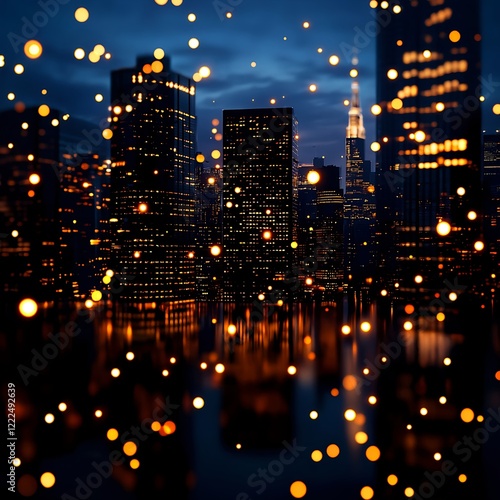 © Arthur Constantine, Fototapeta premium Night Cityscape with Sparkling Lights and Urban Reflections