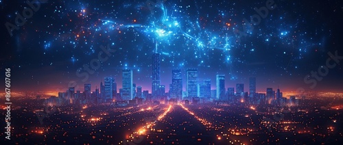 © jongaNU, Fototapeta premium Night Cityscape with Starry Sky