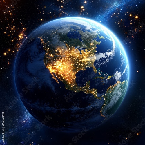 © Touch Heart Photo, Obraz premium Night Earth North America City Lights, Space View, Planet Composition, Earth at Night, Globe, Night Lights Earth, Space
