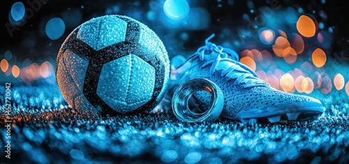 © Muamanah, Naklejka premium Night Football: A Wet Game Under the City Lights