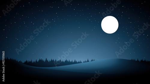 Fototapeta premium Night Forest Landscape with Full Moon and Starry Sky Over Rolling Hills