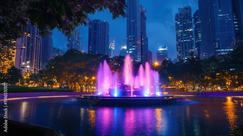 © arisa, Obraz premium night fountain show in modern city park
