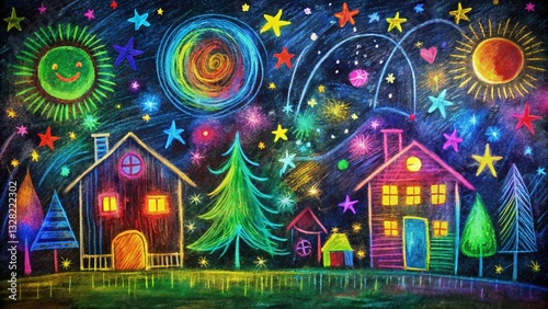 Obraz premium Night Grunge Art: Colorful Doodle Figures & Geometric Shapes