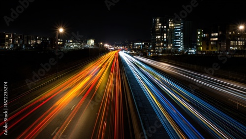 © Akbar, Fototapeta premium Night highway lights streak across