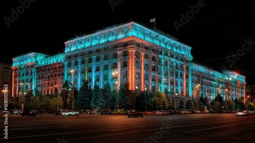 © suhri, Naklejka premium Night Illumination of the Government Building in Chisinau, Moldova