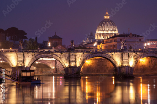Fototapeta premium Night image of St. Peter's Basilica, Ponte Sant Angelo and Tiber River in Rome