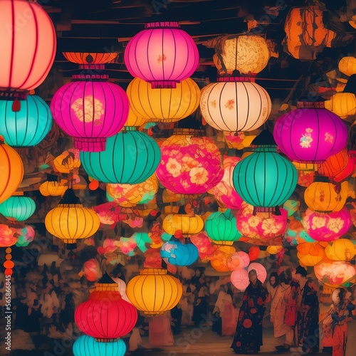 Fototapeta premium Night Japanese City, Generative AI Illustration