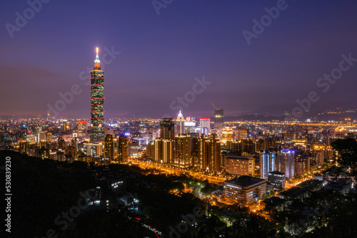 © Kit Leong, Fototapeta premium Night landscape of Xinyi District cityscape