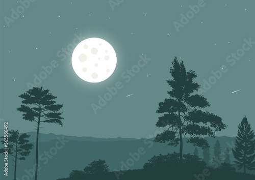 Naklejka premium Night landscape with a full moon and trees. Vector illustration.
