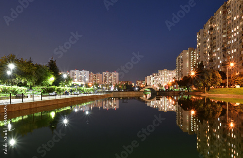 Obraz premium Night landscape with a pond in Zelenograd in Moscow. Russia