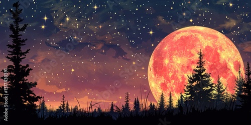 Naklejka premium night landscape with moon