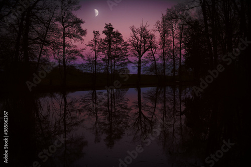 © frostklamm, Naklejka premium night landscape with moon