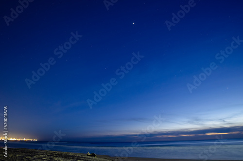 © dore art, Obraz premium Night landscape with sea and sandy beach. Sunset sky with stars.