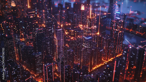 Naklejka premium Night lights, a city of modern business and smart digital innovation with a...