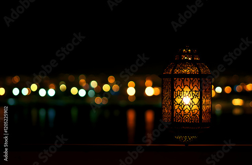 © Gustav, Fototapeta premium Night Lights and Lantern: A Serene Night Scene