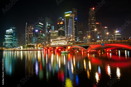 Fototapeta premium Night lights and skyscrapers' reflection at Singapore