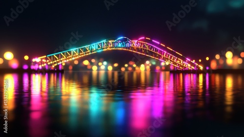 © dextro, Obraz premium Night Lights Bridge Reflection