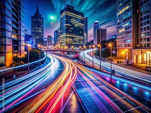 © Four888, Obraz premium Night Lights Flowing Lines Abstract Cityscape Photography