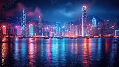 © Alienmarsh, Fototapeta premium Night Lights of Hong Kong