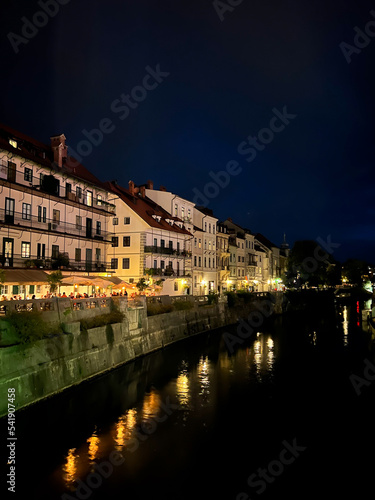 © Yulia Antonova, Fototapeta premium Night Ljubljana, promenade along the river Ljubljanica