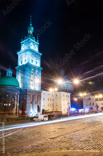 © thaarey1986, Obraz premium Night Lviv old city architecture in the Christmas