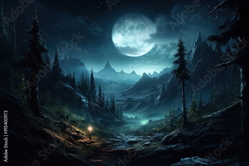 Fototapeta premium Night moon landscape astronomy.