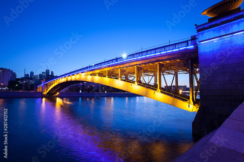© Astroid, Obraz premium Night Moscow landscape with Smolensky Metro Bridge