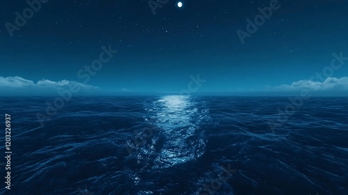 © NAIMAH, Fototapeta premium Night ocean scene with moonlight reflecting on water surface.