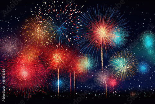 Naklejka premium Night of celebration with beautiful colorful fireworks, night sky of...