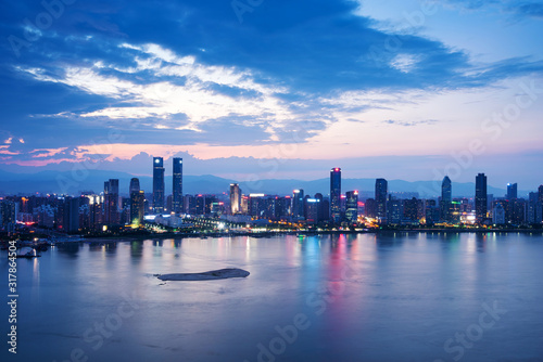 © zorabc, Fototapeta premium Night panorama of beautiful Shanghai city with bright lights, China