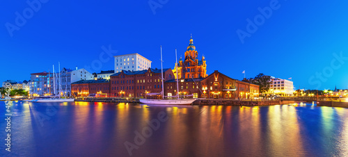 © Scanrail, Naklejka premium Night panorama of Helsinki, Finland