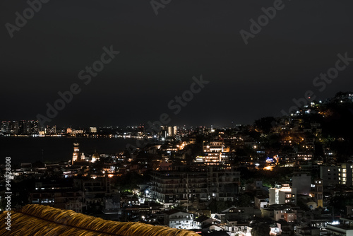© BlokPhoto, Fototapeta premium Night panorama of Puerto Vallarta, Romatic zone.