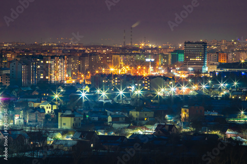 © onyx124, Fototapeta premium Night panorama of the city in winter