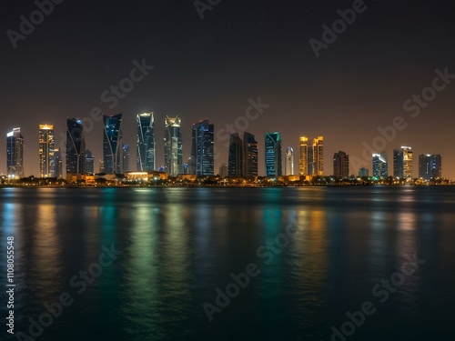 Fototapeta premium Night panorama of West Bay from the Gulf in Doha, Qatar.